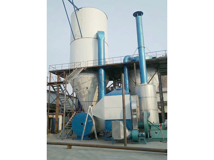 開啟離心風機,然后開啟電加熱,并檢查有否漏氣,如正??梢赃M行筒身預熱,因熱風預熱決定著干燥設備的蒸發(fā)能力,在不影響被干燥物料的質(zhì)量的前提下,應盡可能提高進風溫度;預熱時,干燥室底部和旋風分離器下料口處閥門要關好,以免冷風進入干燥室,降低預熱效率;當干燥室進口溫度達到目180℃~220℃時,開啟離心噴頭,當噴頭達到指定轉(zhuǎn)速時,開啟進料泵,加入料液,進料量應由小到大,否則將產(chǎn)生粘壁現(xiàn)象,直到調(diào)節(jié)到適當量。料液的濃度應根據(jù)物料干燥的性質(zhì)溫度來配制,以保證干燥后成品有良好的流動性;干燥成品的溫度和濕度,取決于排風溫度,在運行過程中,保證排風溫度為一個常數(shù)是很重要的,這取決于進料量的大小,進料量調(diào)節(jié)穩(wěn)定,出口溫度是不改變的。若料液的含固量和流量發(fā)生變化時出口溫度也會出現(xiàn)變動;產(chǎn)品溫度太低,可減少加料量,以提高出口溫度。產(chǎn)品的溫度太高,則反之。對于產(chǎn)品溫度較低的熱敏性物料可增加料量,以降低排風溫度,但產(chǎn)品的濕度將相應提高;干燥后的成品被收集,在塔體下部和旋風分離器下部的授粉器內(nèi),在授粉器未經(jīng)充滿前就應調(diào)換,在調(diào)換授粉器時,要先將上面的蝶閥關閉方可進行;若干燥的成品具有吸濕性,旋風分離器及其管道,授粉器的部位應用絕熱材料包扎,這樣可以避免干燥成品的吸潮吸濕。